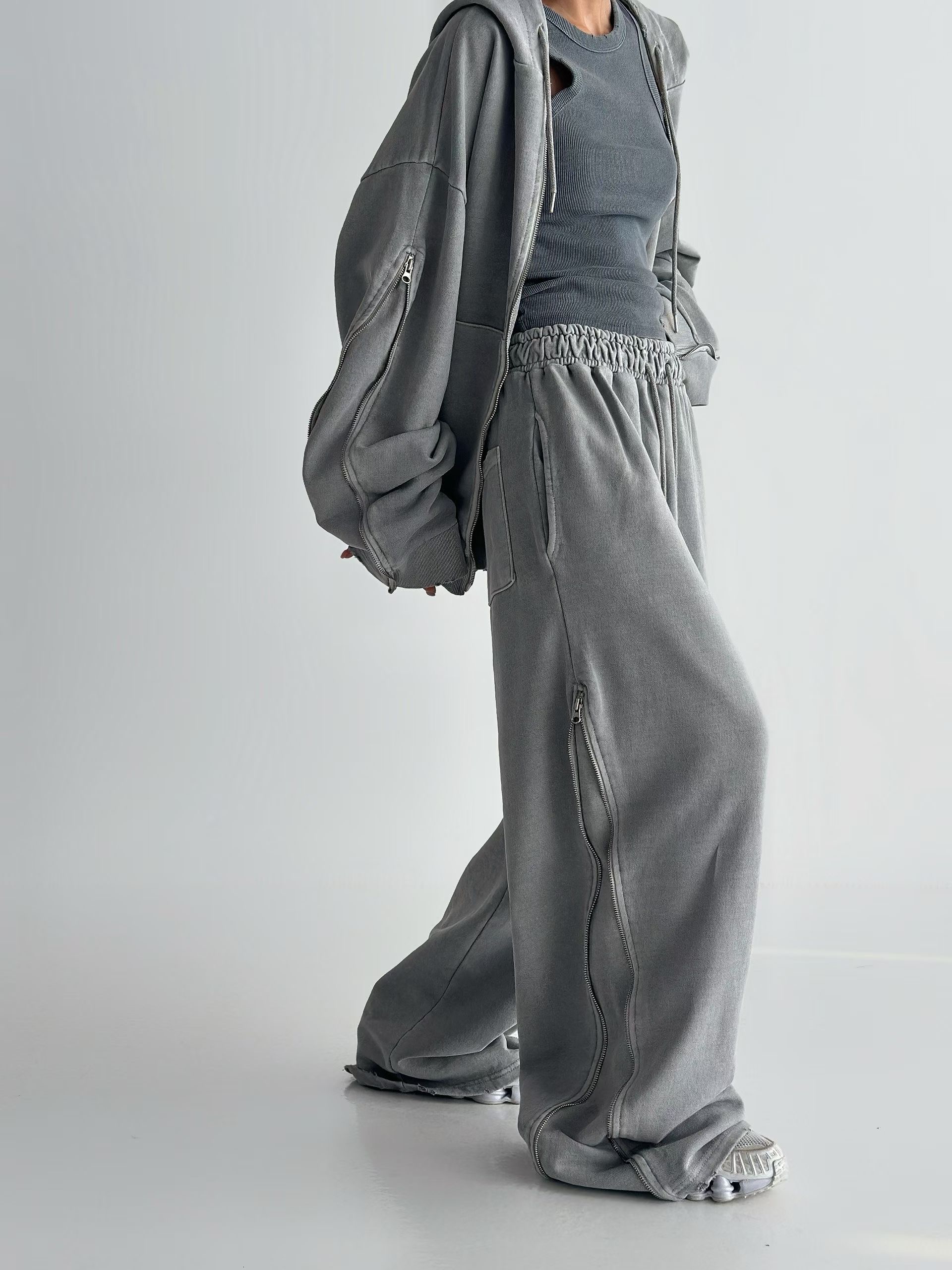 這款長褲打破了日常基礎款的沉悶,採用超大闊腿版型與落地剪裁,輕鬆穿出拉長腿部比例的視覺效果。